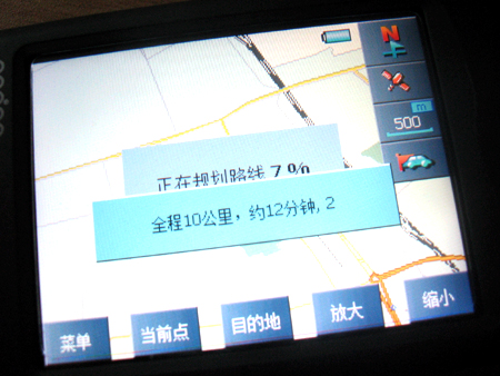 在整体导航过程中,连接速度比较理想,初次定位大约只需要15秒左右的时间。因为P800是内置的GPS模块,从来没有出现连接不上GPS的问题。灵图公司的为了方便用户,还是下了很多功夫的,无论是内置、CF卡、蓝牙GPS都能自动识别并自动连接,省得用户自己动手设置,这一点十分的人性化。不过还是有一些小小的不足需要继续改进。