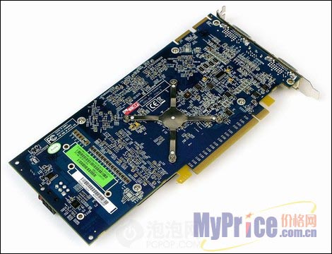 蓝宝石X1950PRO显卡采用了传统风格的蓝色PCB和极酷的散热器,上面照例有外星人MM的照片,拥有精细的做工和扎实的用料,使得整块显卡看起来就像工业艺术品一样。