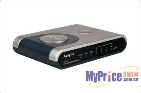 Aolynk BR104采用银灰色上盖搭配黑色面板,颇具时尚感,前面板指示灯齐全,后面板提供了1个WAN口,4个LAN口,1个外置电源接口;在启用NAT时吞吐量可达6Mbps,最大功耗只有5.5W。重量只有230克。