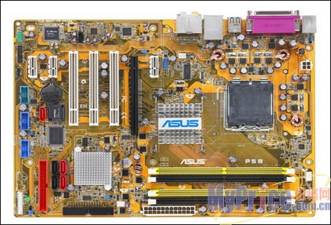 华硕P5B采用的是黄色PCB板,全尺寸ATX大板结构。主板采用的是INTEL P965+ICH8的组合,全面支持INTEL Core 2 Extreme、Core2 Duo、Pentium Extreme、Pentium D、Pentium 4以及Celeron D全系列CPU,前端总线为最高1066 MHz。