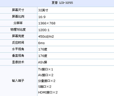 这款机器采用夏普原厂的ASV液晶面板,在可视角度和色彩饱和度等方面尤为出色,作为32英寸的液晶电视,这款32PX5拥有不错的性能和华丽的外观设计,而这一切只要7690元,性价比十分突出。