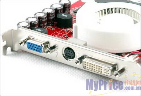 供电模块部分采用了开关式分离供电设计,分别为显存与核心供电,输出方面采用了DVI+VGA+TV-OUT全接口输出。
