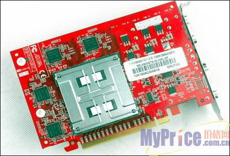 显存采用现代2.8ns DDR显存,显存频率为700MHz,正反各4颗显存颗粒组成128M/256bit的显存规格。尽管采用DDR显存,不过其因为得益于DDR的低延迟特性,效能并不差于DDR2显存。