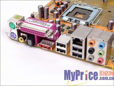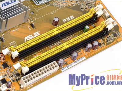 从外观上来看,这款华硕 P5B沿用其一贯的橙黄色PCB基板设计,单从上面分布均匀的大量电容、插槽、焊接点就足以验证出华硕强大的研发实力的品牌成熟和魅力。P5B的布线完全是依据核心规格,充分利用资源展开,最大化的实现了相关的性能扩充。电容、芯片焊接没有预留任何的空焊,相信目前还没有其它板卡厂家和华硕的做工相比。
