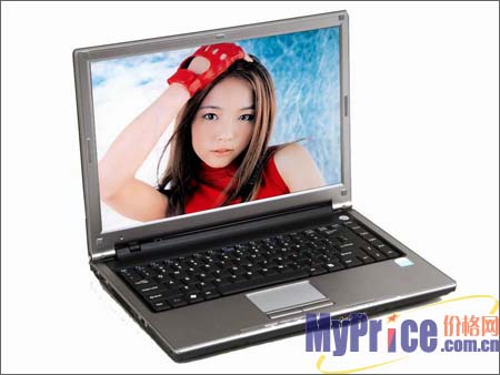本本外观简约时尚,整机采用深灰色为主色调,本本边缘采用封闭式美工曲线处理,搭配14寸镜面高亮润清宽屏,分辨率为1280×800,整体看上去非常稳重大气。