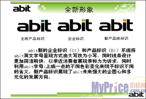 2006年6月7日,升技主板(abit)在台北电脑展上正式宣布将启用全新的企业标识(CI)和产品标识(BI)系统。升技主板(abit)新的企业标识和产品标识系统之间做了明确的区隔,在强调既有企业文化和品牌延续性的同时,还增加了除主机板外代表新产品线的单独标识,表明未来abit多元化的发展方向。abit强大的研发实力和市场行销结合环隆电气(USI)的产能优势,发展自主机板品牌以外产品的版图将成为abit的另一个重要目标。