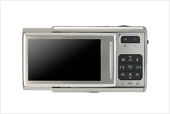 滑盖式设计虽并非首创,在索尼T系列以及富士Z系列上都有所见,但i70的滑盖机身却是让人耳目一新。滑盖未打开时,整个机身浑然一体,你都很难看出这是一款数码相机,更像是一件装饰品。而当滑盖打开时,机身长度也随之增加,又倘若一部滑盖手机。