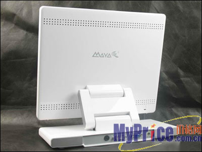 这款玛雅 Super snow的前面板就像雪一样纯洁,没有按键,没有图案,只有右下角的电源按钮,给中心对称的设计风格带来了恰当的变化,其背面的设计也是雪白一片,只印有一个玛雅的LOGO,这也是SNOW身上唯一突起的装饰。上下两排散热孔,保证了液晶显示器的工作状态,即使在长时间的连续工作下,仍不会影响SNOW有良好的表现。