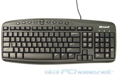 黑色版微软极动套装键盘使用高档黑色工程塑料并经过磨砂处理,手感舒适,键帽采用中文注释,并经过特殊处理,耐磨损不脱落。在其键盘的底部设有两个排水小孔,加上其内部密封较好的缘故,防溅水设计表现不错.