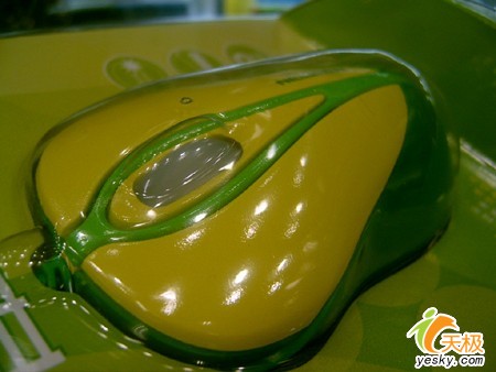 “青春玉米”正如她的名字一般,外观像一颗玉米,亮丽,健康、清纯,鼠标表面亮黄色与翠绿色的合理搭配,似娇嫩的玉米叶包裹着青春的玉米棒子,散发出青春动力。鼠身采用了人体工学设计,流线型的鼠身轮廓让人握上去十分的适手,适中的鼠背隆起坡度也能够将用户的手掌很好的托起,两侧还各有一个凹进的设计,方便大拇指与小指从两侧将其加紧,提高稳定性。而且在使用中,青春玉米的滚轮中键还能发出淡淡的绿光,十分的惹人喜爱。