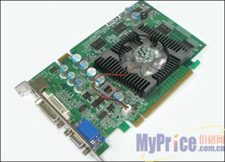 在供电方面,采用核心/显存相互独立的供电设计,核心供电采用2相供电设计,采用了大量高品质铝壳电容和低阻MOS管,满足7300GT较小的功耗绰绰有余,而显存供电安排在PCB末端,为显卡高效稳定运行提供了坚实的保障。