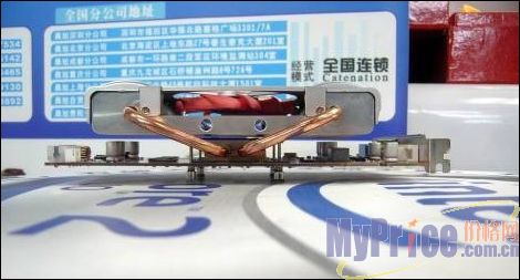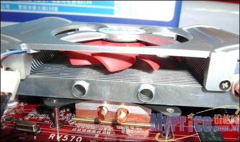 这款台湾Evercool定制的Turbo2散热器将热管与传统散热片完美的结合在了一起,并通过风扇来加强冷却效果,底部拥有纯铜底座,上面覆盖大面积的鳍片和两根热管,80mm的大口径风扇只需2000转/分就能带来足够的风量,风扇还能照顾到显存和其它元件,不仅有效帮助显卡散热,其特殊风道也能帮助冷却主机。
