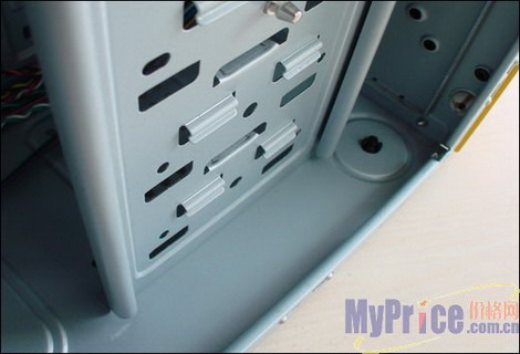 前面板有4个5.25英寸驱动器位和一个3.5英寸软驱位,充分考虑到了用户的使用习惯,并且拥有了良好的扩展性。