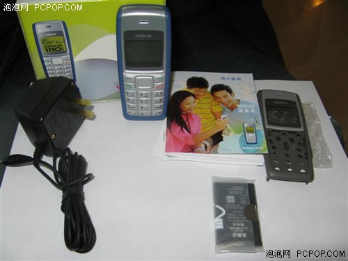 简单就是要有简单的样子,既然是低端机,就要把成本控制到最低。大家可以在上图看到,1110i仅有的几样配件就是一根充电器,一块电池,一套原装外壳,然后是小版面的说明书,甚至连盒子都省略到了肥皂盒般大小,可谓成本控制到家了。