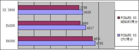 从上图可以看出得3款处理器的分差距都非常的小,但依然是E6300领先E4300,E4300领先X2 3800+。