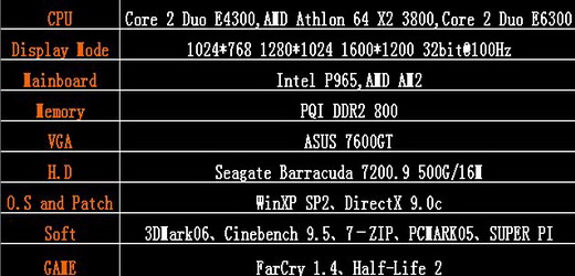 我们使用了酷睿E4300和AMD Athlon 64 X2 3800作为对比测试,所有测试均在默认频率下进行,因为超频测试的对比结果毫无疑问是E4300会胜出。
