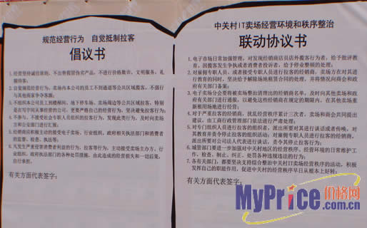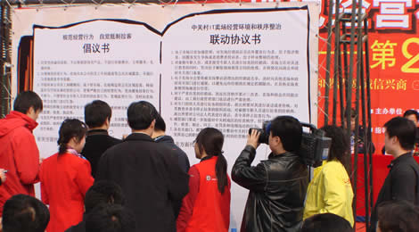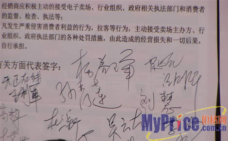卖场方代表和经销商代表签订“规范经营行为,自觉抵制拉客承诺书”