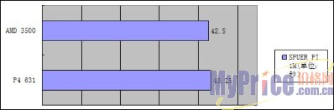 在Super PI 1M的测试中双方几乎平手,AMD Athlon64 3500+ 领先0.75秒。