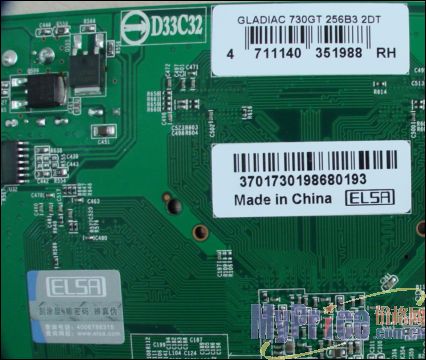 显卡的背面我们可以看到ROHS的标识,通过了欧盟无铅设计认证,非常环保。并且背面有ELSA的防伪标签,对与消费者来说这是非常体贴的设计。