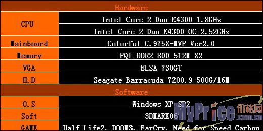 高端平台的测试结果不能真正反映出一款显卡的实际游戏性能,大多消费者不会用天价平台跑游戏,所以我们采用了最低端的酷睿E4300平台作为测试方案,这样的测试结果会比较公允。