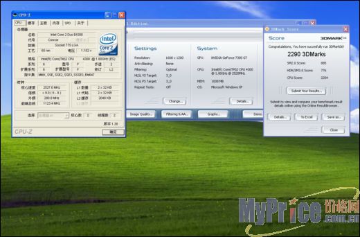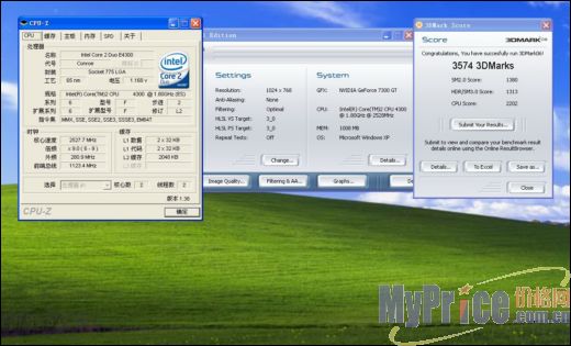 酷睿E4300普遍有超频3GHz的潜力,不过我们仅仅调整到了280外频即2.52MHz,显卡为默认频率,3DMARK06的1024×768分数为3574,这个分数很少有7300GT能达到,这源于ELSA高达575/700的频率。