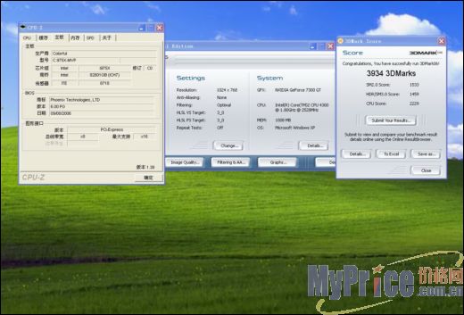 为了验证这个频率的稳定性,我们在644/766的频率下进行了3DMARK06的测试,1024×768分数提升为3934,对于一款600¥左右的显卡来说,能够拥有将近4000的3DMARK06分数的显卡仅此一款。