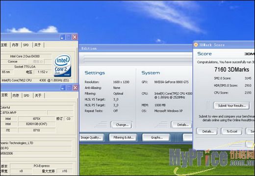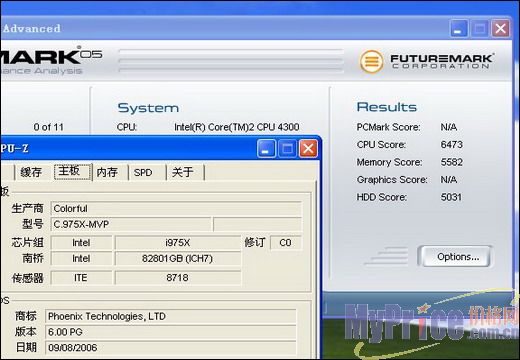 我们使用了3DMark06,PCMark05,SiSoftware Sandra 2007这三款测试软件来测试七彩虹C.975X-MVP Ver 2.0平台的表现。