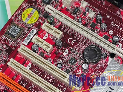 在外观方面,微星 K9N Neo-F采用微星传统的火红色设计,做工和用料也非常的扎实,一看就是一线大厂的作风,给人一种很踏实的感觉。
