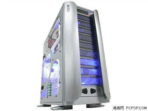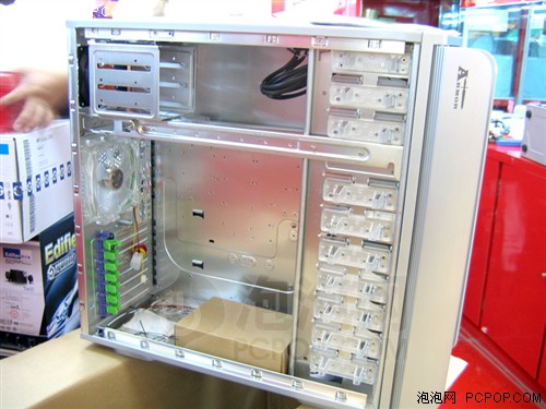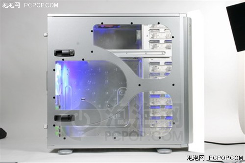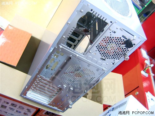 特别要注意的是机箱的后部,其风扇和PCI接口都可以灵活互换以满足未来BTX的需要。这个放置风扇的位置可以固定散热排以满足水冷系统的应用。