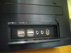 这款银欣LC17卧式机箱,机箱面板采用黑色拉丝面板点缀两个精致的按钮,这种搭配已经成为众多HTPC机箱的标准。隐藏面板内有4个USB接口、2个音频接口、1个1394接口,没有多功能读卡器比较遗憾。这种设计在众多HTPC机箱中都能见到,模仿痕迹过重且没有新意,但是作为一款入门级机箱我们没有必要要求过多。