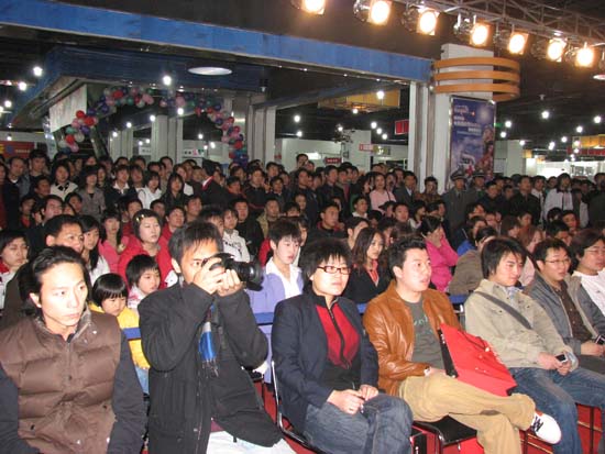 下午14点才开始的现场采访会,早在中午12点左右,中关村e世界负一层动漫世界就已经有上百名歌迷等候。现场采访会于2007年3月24日下午14点准时进行,当场歌迷具小编目测大约有七到八百人。会场气氛十分热烈,歌迷一直高呼着“阿朵、阿朵、阿朵......”。这次的主办方中关村e世界更是不敢怠慢,保安更是多的数不过来,坚如职守的维持着现场火暴的秩序。