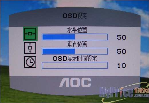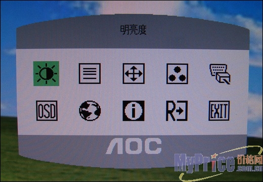 “蒙太奇”的OSD调节菜单非常简单明朗,即便是不经常接触电脑的人也能运用自如,用户还可以使用旁边的AUTO键自动优化屏幕大小。