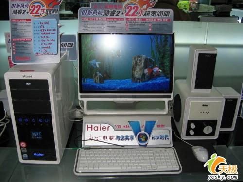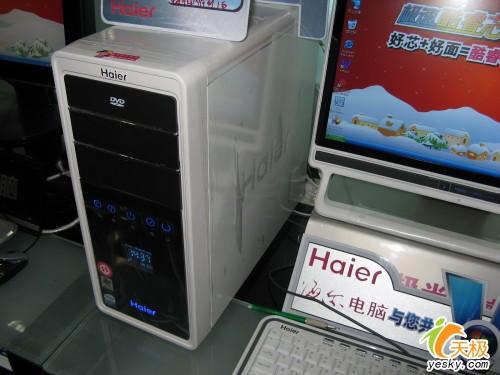 在配置方面,海尔极光A6-6609采用Intel Core 2 Duo E6300处理器(1.86GHz、65纳米、2MB二级高速缓存、1066MHz前端系统总线、LGA775封装、硬件防病毒、EM64T、节能技术),1GB DDR2内存,搭配160GB串口7200转高速大容量硬盘,独立的PCI-E 7300GS 128MB独立显卡。显示器方面配备了海尔独有的润眼3H高清19寸宽屏,支持4格窗口,可进行多画面同步播放。而且面板外面还有一层玻璃,与黑晶α抗反光涂层和Hi-TM树脂滤光护眼技术相结合,可把刺激眼睛的有害光波进行过滤,大大降低了电脑显示器对人体的辐射。不仅可以保护液晶面板不受意损坏,也增强了画面可视效果,有助于真实色彩的表现。而且,显示器机身比较薄,纯白色的机身加上黑色的边框,尽显典雅大方,支架式的设计独出心裁,改变了传统的底座方式,使显示屏占地空间达到了最小,可以说设计的十分精妙,时尚又不张扬。而键盘也采用了海尔的超薄设计。此外,还配备比较少见的19合1读卡器,可以轻松与其他数码设备交换数据,让用户使用更方便更快捷。操作系统为Windows Vista Premium版本。目前,该机的售价为7299元。