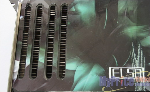 艾尔莎8800GTS的供电模块使用了三洋固态电容、封闭电感、大量的MOS,保证了这个吃电大户能发挥最强的性能,显卡需要一组PCI-E 6-pin电源接头为它供电,400W以上的电源是运行8800GTS的基本要求。