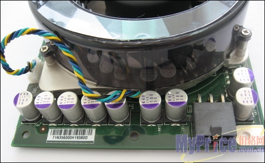 这款显卡上采用的散热风扇由CoolerMaster代工,涡轮式的风扇搭配前方散热鳍片与热管,可以快速挥发热量使显卡稳定地工作,并且非常静音。
