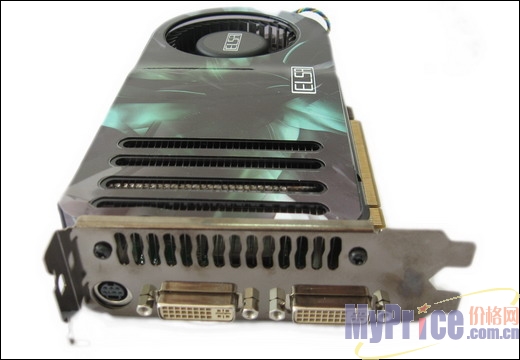 艾尔莎8800GTS的输出接口也相当丰富,它采用双DVI-I连接,可实现双显示功能。并且输出2560x1600分辨率、双16:10宽屏幕的画面也没有任何问题。8800GTS在DirectX10时代没有真正到来之前,能一露身手的地方就是高分辨率下的抢眼表现,分辨率越高8800GTS相对于其他显卡的表现越优异。这款显卡的散热孔和TV-OUT接口在最上面,挡板为一体成形设计。
