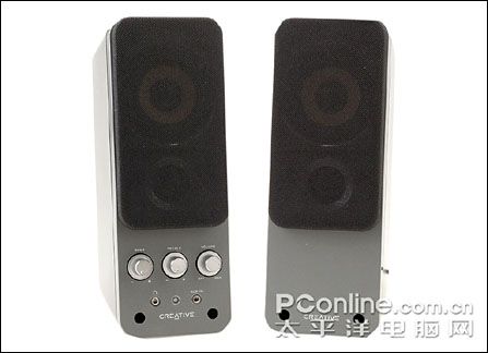 ??总的说来,创新GigaworksT20音箱在外观设计及内在用料方面相当不错,特别是音箱采用了BasXPort技术及音箱顶部的导相孔设计,使得低频延伸力大大加强。除了外观、做工下足功夫,在简单试听后,T20无论在低音或高音清晰度方面都有相当不错的表现,比起市场上流行的2.0声道音箱来说音色圆润沉稳清亮一些,但千元定位售价并非一般朋友可以接受,当真是一分钱一分货。