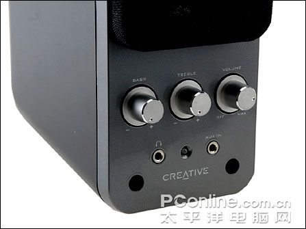 T20主要为对音质要求较高并要求外观精巧便携的人士所设计,音箱整体线条流畅,箱身笔直修长,外壳采用高密度纤维板制成,经磨沙工艺处理显得很有质感,再配以纯黑网膜,加上银白色金属旋钮,使这款2.0声道音箱除了具有一定的耐脏能力以外还有一定的专业气息。在这里要补充说明的是,主箱体(如上图左边前面板有旋钮的)为右声道音箱,另外的则是左声道音箱。在实际播放音乐时,音箱的摆位是很重要的,直接影响到声音的环绕效果,所以需要购买音箱的朋友们则请注意了。