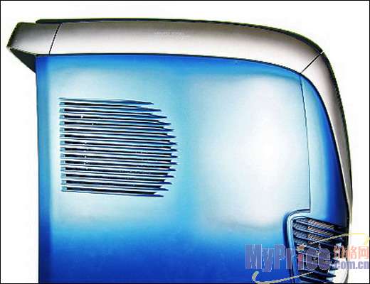 机箱侧面的通风孔造型非常动感,面板材质略带磨沙感,抗污能力非常强。