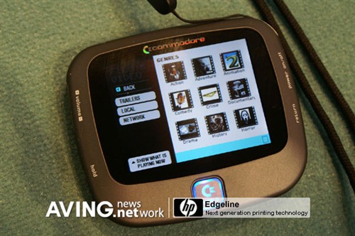 这款产品型号是C-IP-5000,它具有2.8英寸16万色QVGA显示屏,可以播放MPEG-2、MPEG-4、Divx、XvID格式视频与MP3、WAV与WMA格式音乐,还具有802.11b/g无线网络功能。它内置1GB或者2GB的闪存,可以通过SD卡扩充额外的2GB容量。1100mAh的锂电池可以支持4小时的视频或者11小时的音频。