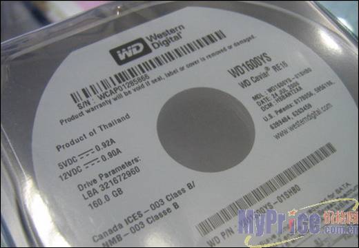 WD 鱼子酱RE16 WD1600YS是目前160G容量硬盘里为数不多的使用16M缓存的,并且价格在500¥左右,非常超值。