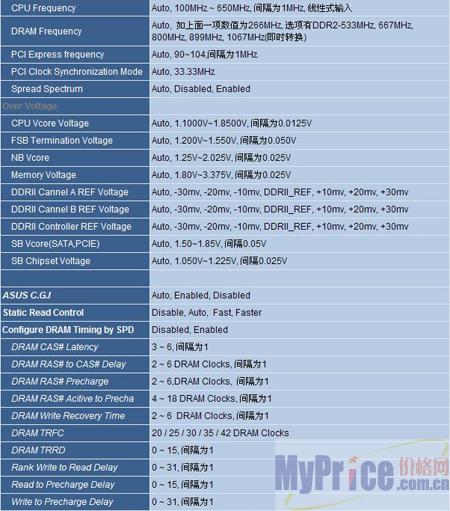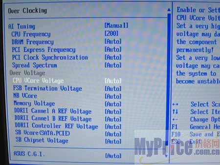 我们可以看到,华硕Commando的BIOS调节选项非常丰富,其中CPU外频可调范围为100-650,可以提供给玩家最大程度上的发挥。另外,该BIOS还提供了丰富的内存电压调节选项及华硕智能超频选项,可以提供给超频玩家最大的方便。