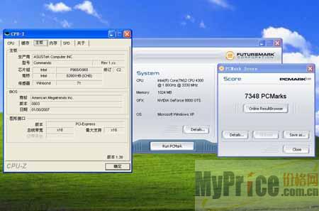 这套系统在PCMark05下得分为7348分,这个分数在所有P965主板中算是比较高的,除了CPU及显卡的性能强劲以外,华硕Commando良好的调节性能也是功不可没。