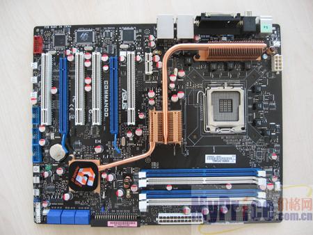 华硕Commando主板采用Intel P965/ICH8R芯片组设计,支持800/1066MHz前端总线设计,采用LGA775接口处理器。支持双通道DDR2 800内存,主板提供4个DIMM插槽。提供2个PCI-E总线显卡插槽,使用破解驱动可组建双卡系统。提供6个SATA接口。板载双网络和IEEE1394接口。