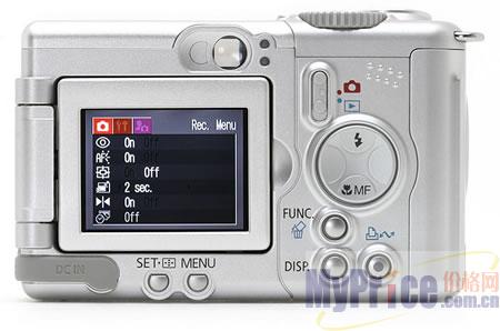 此外,在供电系统与存储介质方面,A95采用的是CF type I存储卡及4节五号AA电池,A系列一直没有采用锂电池,这样及节省成本,又使相机不受电池的限制。机身的体积大小为101mm×65mm×35mm,不含电池与存储卡的机身净重约为235克。