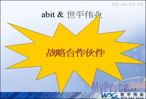2007年3月1日,升技主板(abit) 和世平伟业国际贸易(上海)有限公司(WPG C&C China)在北京正式签署战略合作伙伴协议。双方将在原料采购、生产制造以及渠道销售等方面展开全方位合作,谋求增加双方在中国大陆市场的市场份额及盈利。