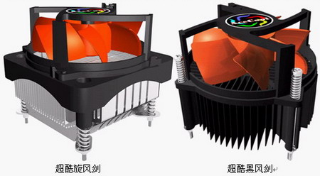 超酷“旋风剑”、“黑风剑”是近期颇受用户关注的两款产品,这两款产品都采用了超酷独创的“飓刃”风扇技术设计。 “飓刃”技术运用[Turbulent-Hydrodynamic紊流体动力学]及[Propeller-blade Concept 推进翼面概念]设计,突破了传统风扇低风压的瓶颈,使其动作更完美宁静。“飓刃”风扇的定向涡卷导流罩,运用紊流体动力学及计算机的精密计算,将前导流罩定向特殊弯辐的入射角,形成强大的紊流涡卷,风扇能够使更多的气流从360度进风,从而在不改变扇叶尺寸和转速条件下,加大通过散热片的风量,增强散热器的散热效能。凭借优秀的设计原理,超酷的“飓刃”式散热器赢得了众多用户的好评。