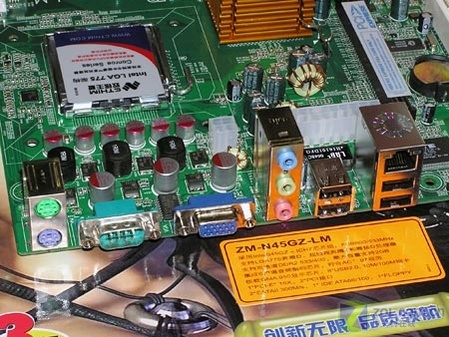 致铭N45GZ-LM主板提供4个USB接口。板载网络和集成声卡接口。由于是一款整合主板,提供显示VGA接口。