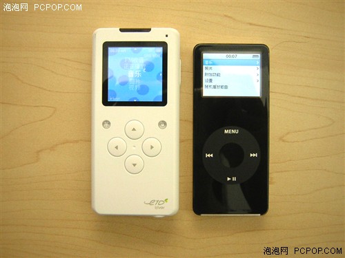 E10的模样和苹果的iPod nano有相似的地方。不过,它的四方按键再加上两侧的前进、后退键,使它看起来更像是一部电视遥控器。而在颜色方面,E10共有珍珠白及典雅黑两种颜色可供大家选择。