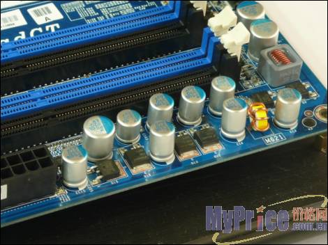 主板上所有的电容元器件都选用NIPPON Chemi-Con PS系列,全固态电容造就了无可置疑的稳定性和使用寿命,主板的用料可以说奢华来形容,最先进的数字式PWM供电模块设计、贴片式电感、MLCC多层陶瓷电容一应俱全,为用户追求极限频率打下了硬件基础。